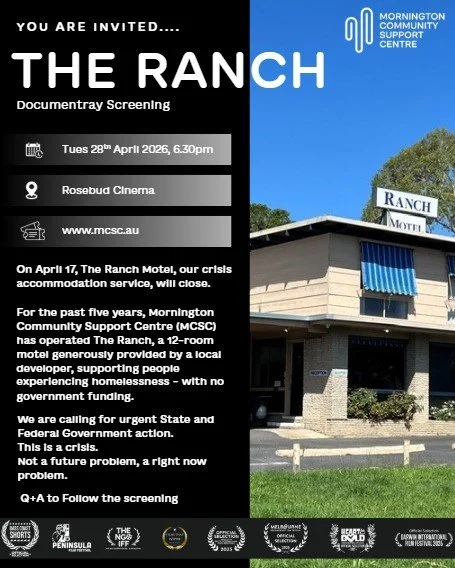 Crisis Accommodation (The Ranch): MCSC operates The Ranch, the only crisis accommodation service on the Mornington Peninsula.